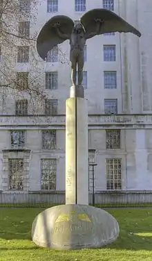 The Fleet Air Arm Memorial, sometimes known as Daedalus, is a war memorial in London, commemorating the service of the Royal Naval Air Service and the Fleet Air Arm from their establishments in 1914 and 1924 respectively, in the First World War, the Second World War, the Korean War, the Falklands War and the Gulf War, including over 6,000 killed in all conflicts. The service of the Fleet Air Arm is also commemorated at the National Memorial Arboretum in Staffordshire, at the former base of the Fleet Air Arm at HMS Daedalus in Lee-on-the-Solent, and at the Church of St Bartholomew, Yeovilton.