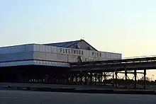 Fleetwood Pier opened on Whit Monday in 1910, a pavilion was added the following year, and a cinema was opened in 1942.[1] The pier was badly damaged on 25 August 1952 after a fire started in the cinema, and did not fully reopen until 1958.[4] At different times, it was an amusement complex, bar and dance hall. The Stefani family were the longest owners in the Pier's history, owning and running Fleetwood Pier from the 1960s until 2000. The pier was first closed in 2000 when its owners went into liquidation, but it was reopened under new ownership in 2003, after Roger Stefani sold it.[2] However, safety concerns forced the pier to shut once more, and when it was gutted by fire in September 2008 it had been closed for almost two years. At that time, the owners, Simmo Developments, had submitted plans to convert the structure into an apartment complex.[5]