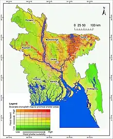Flood shelter suitability areas in Bangladesh