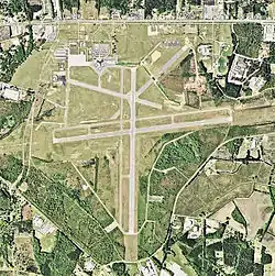 The airport covers 1,436 acres (581 ha) and has two asphalt runways: 1/19 is 6,000 × 150 ft (1,829 × 46 m) and 9/27 is 6,502 × 150 ft (1,982 × 46 m).[2]