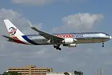 A Florida West Boeing 767-300F landing at Miami International Airport in 2013