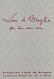 The Fondation Louis-de-Broglie was created at the Conservatoire national des arts et métiers in 1973 by Louis de Broglie on the occasion of the fiftieth anniversary of the discovery of matter waves. Louis de Broglie bequeathed the foundation property acquired thanks to his Nobel prize in physics.[1]