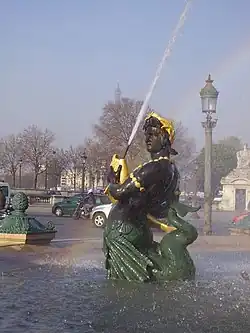 - ↑ Projet de distribution des eaux de la place de la Concorde et d'embelisssement des Champs-Elysees, Prefecture du departement de la Seine, 1837. Cited in Paris et ses Fontaines, pg. 193.