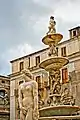The Praetorian Fountain (Italian: Fontana Pretoria) is a monumental fountain located in Piazza Pretoria in the historic center of Palermo, region of Sicily, Italy. The fountain dominates the piazza on the west flank of the church of Santa Caterina, and is one block south of the intersection of the Quattro Canti. The fountain was originally built in 1544 in Florence by Francesco Camilliani, but was sold, transferred, and reassembled in Palermo in 1574.