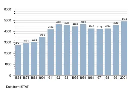 - ↑ "Popolazione Residente al 1° Gennaio 2018". Italian National Institute of Statistics. Retrieved 16 March 2019.