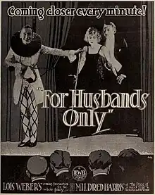For Husbands Only is 1918 American silent comedy-drama film and directed by Lois Weber and her husband Phillips Smalley. The film was distributed by Universal Pictures. The film was apparently made in late 1917 but not released until just before the end of World War I. For Husband's Only is now considered to be a lost film.[1][2][3]