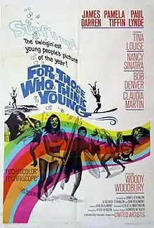 For Those Who Think Young is a 1964 beach party film shot in Techniscope, directed by Leslie H. Martinson and featuring James Darren, Pamela Tiffin, Paul Lynde, Tina Louise, Bob Denver, Nancy Sinatra, Robert Middleton, Ellen Burstyn (billed as Ellen McRae), Claudia Martin and Woody Woodbury.