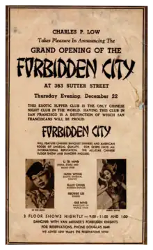 - 1 2 3 "'Forbidden City' documents jumpin' Chinatown cabaret scene". The San Francisco Examiner. 2014-05-29. Retrieved 2020-05-13.