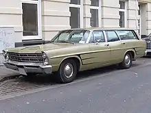 The Ford Ranch Wagon is a station wagon which was built by Ford in the United States from 1952 to 1974. The Ranch Wagon was a full-size model, except in 1963 and 1964, when it was part of the intermediate-size Fairlane series, and represented the lowest-priced selection in its respective line.