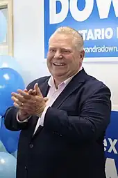 - Doug Ford (born 1964) Canadian politician and businessperson who has served as the 26th and current premier of Ontario since June 2018 and leader of the Progressive Conservative Party of Ontario since March 2018.[4] He represents the Toronto riding of Etobicoke North in the Legislative Assembly of Ontario.