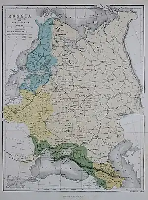 The Russian pressures on the Ottoman Empire continued, leaving Britain and France to ally with the Ottomans and push back against Russia in the Crimean War (1853–1856). Russophobia was an element in generating popular British and French support for the far-off war.[53] Elite opinion in Britain, especially among Liberals, supported Poles against harsh Russian rule, after 1830. The British government watched nervously as Russia suppressed revolts in the 1860s but refused to intervene.[54]