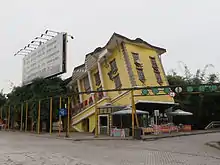 Foreigners have been encouraged to set up shops, hence the name. Buildings include a church, an upside-down house, and the world's largest public toilet (the "Porcelain Palace"). Foreigners' Street is located near Danzishi in the Nan'an District of Chongqing.[5] The attraction was initiated by the manager of Meixin Group. It covers an area of over two square kilometers.