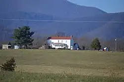 ![]() Distant view from the southwest, with the Blue Ridge in the background | |