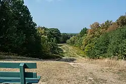 ![]() Looking northeast from the site of the Rockefeller home down Toboggan Hill | |