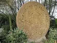 The Plaza of Mesoamerican Heritage had indigenous/non-Christian sculptures by Meliton Salas Rodriguez, of Guadalajara, Mexico. Salas used hand tools to first quarry, then work, the native Mexican stone into precisely scaled, detailed replicas of artwork and artifacts that are representative of the Aztec, Huastec, Maya, Mixtec, Olmec, Teotihuacan, Toltec, Totonac, and Zapotec civilizations that preceded both Spanish colonialism and modern Mexican culture. The Plaza stood in contrast to the Christian and patriotic American themes which were originally reflective of the culture at Forest Lawn Hollywood Hills and other Forest Lawn Memorial Parks since their inception by Christian American businessman Hubert L. Eaton. A smooth Olmecan head, an intricate Aztec sun calendar and a sinuous Teotihuacan bas relief were some of the sculptural features of the plaza that were set off by crushed stone walkways and complemented by groupings of Mesoamerican plants.