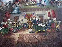 - The Court of Liberty features statues of George Washington and Thomas Jefferson and the Birth of Liberty mosaic. At 162 feet (49 m) long and 28 feet (8.5 m) high, Birth of Liberty is the largest historical mosaic in the United States. It is composed of ten million pieces of Venetian glass and depicts twenty-five scenes from early America, from 1619 to 1787.