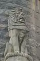 A notable feature of the District Court is the historic wooden canopy located over the seat upon which the Magistrate sits in the main courtroom.[1] The canopy was taken from old Supreme Court which had originally been located at the site. At the corner of La Trobe Street and Russell Street, in the former main entrance, there are numerous holes in the bricks that were caused by shrapnel from the Russell Street Bombing that can still be seen today.
