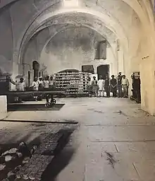 Some of the expenses for the operation of the bakery were relieved as a number of slaves were engaged in forced unpaid labour.[24] Only trusted slaves were allowed to work at the bakery. However, after the revolt of the slaves during the magistry of Grand Master Manuel Pinto da Fonseca, none of the slaves were trusted in important buildings such as the bakery which provided traditional everyday food.[25] The incident followed by a shortage of bakers in Valletta that villages bakers were ordered to do so on site and those who refused to bake bread in the city were jailed by the Castellania for a roughly a week.[26][27]