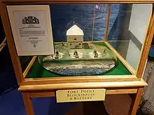 Fort Morris was a British fort or blockhouse built during the French and Indian War, located at Liverpool, Nova Scotia.[2] The fort was located at present-day Fort Point Lighthouse, while a surrounding blockhouse was at the corner of Lawrence and Wolfe Streets.[3][4] (In 1762, the blockhouse was occupied by Lieut. Jonathan Diman Ebenezer Dexter).[5] The fort was completed shortly after Liverpool was established and the Halifax Treaties were signed (1759-1760). The fort was a local militia five-gun earthwork battery. Fort Morris was named after Surveyor General Charles Morris, who designed the layout of the town. (The fort was built the same time as Fort Ellis and Fort Belcher.)