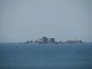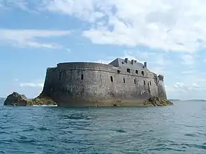 Fort de la Conchée is a fortification on the rocky island of Quincé, four kilometers north-west of St Malo, France. Constructed by Sebastien Vauban the fort covers almost the entire island. The fortress consists of a service building built on high, thick granite masonry walls two stories high. An oval upper terrace with embrasures facing the open sea served as the fort's site for the fort's battery. Today, the fort is a nature reserve for seabirds.
