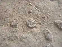 Stromatolites are layered accretionary structures formed in shallow water by the trapping, binding and cementation of sedimentary grains by biofilms of microorganisms, especially cyanobacteria.[53] Stromatolites provide some of the most ancient fossil records of life on Earth, dating back more than 3.5 billion years ago.[54]