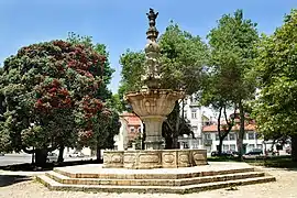 The ornate fusifomr fountain of Chafariz do Passeio Alegre along the Rua D. Luís Filipe