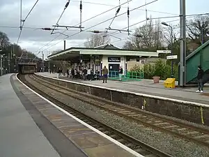 Four Oaks remains a terminus for some services from the south, which mostly use the dead-end platform 3 on the eastern side of the station to turn back.[1] Northbound trains continuing to Lichfield use platform 1 and southbound ones from there use platform 2 (though this can also be used for terminating trains from the south if required).