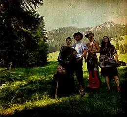 Fräkmündt is a folk music project from Central Switzerland. The band calls its musical style "Ur-Folk". They re-interpret old folk songs of their region and create new songs based on legends, stories and the iconic landscape of central Switzerland. The music consists of elements of traditional Volksmusik from Switzerland as well as folk music from other regions, but also many other different styles of music. The project thus follows the old spirit of Swiss folk music, that has always been a constantly changing and growing mixture of different influences paired with local folklore. The lyrics are written and performed in the local High Alemannic German dialect. Since their formation in 2009, Fräkmündt have managed to get the attention of an international audience and their albums were positively reviewed in several countries.[1][2][3][4][5]