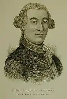 - ↑ Nicolas Renaud d'Avesnes. Comte des Meloises, chevalier de St. Louis