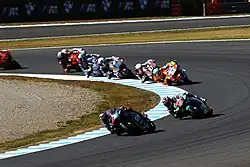 Bagnaia opened the season with a win in Qatar, having led the race from start to finish. Bagnaia took a second win in Austin after a hard fight with Álex Márquez winning the race with a gap of 2.4 seconds and also setting the fastest lap of the race. At Jerez Bagnaia finished 3rd behind Lorenzo Baldassarri and Miguel Oliveira holding his starting grid position. Bagnaia took his first pole position in Moto2 at Le Mans, and like the race in Qatar he led from start to finish. The win was also his 3rd podium at Le Mans since 2015. Bagnaia took a 4th win at Assen, starting the race from Pole Position and leading the entire race. After qualifying 3rd on the grid in Sachsenring, Bagnaia finished the race down in 12th place, having been forced outside of the track after Mattia Pasini, who fell down in front of him in the last corner on the second lap, and despite being down in 26th, he made up fourteen places in two laps, including overtaking Álex Márquez the final corner of the last lap. At Brno Bagnaia finished third and lost the championship lead to Oliveira, but quickly retook the championship lead at Austria, winning his 5th race of the season. Bagnaia won his sixth race of the season at Misano from pole position. He took a 5th straight podium at Buriram, winning the race with his teammate Luca Marini in second place. He took his 8th win of the season at Motegi after Fabio Quartararo, who initially won the race, was disqualified due to low tyre pressure. After finishing 3rd at Sepang he was crowned Moto2 World Champion with his 12th podium of the season, his teammate Luca Marini taking his first ever Moto2 win as well, his 5th podium of the campaign.[8]