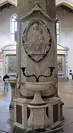 After the conspiracy, Lorenzo commissioned the sculptor Antonio Rossellino to build a mausoleum in honor of Nori in the Basilica of Santa Croce in Florence; it includes a marble sculpture of the Nursing Madonna.[1][2][3]