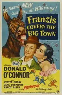 Francis Covers the Big Town is a 1953 American black-and-white comedy film from Universal-International, produced by Leonard Goldstein, directed by Arthur Lubin, that stars Donald O'Connor, Yvette Duguay, and Gene Lockhart. The distinctive voice of Francis is a voice-over by actor Chill Wills.