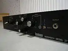 In 1972, Lee filed a patent for a device that could compress or expand the time duration of sound waves while preserving normal sound quality.[29] That year, Lexicon introduced Varispeech, an electronic speech compressor for use in the language instruction market, specifically to help blind students access text more quickly and persons with speech disorders study spoken language.[3][30] Varispeech, the first commercially available pitch shifter, could speed up or slow down recorded speech, while maintaining normal pitch.[31]