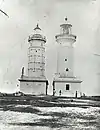 1. The Greenway lighthouse was replaced by the James Barnet lighthouse in 1878. The former lighthouse was demolished and the latter lighthouse remains in use. The image shows the two lighthouses, side by side, in the 1880s. The Green lighthouse is on the left.[19]