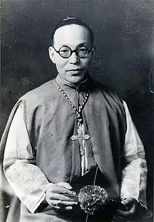 Born in Pyongyang on 12 October 1906, Francis Hong Yong-ho was ordained to the priesthood on 25 May 1933.[1][2] Eleven years later, he was appointed the Vicar Apostolic of Heijō and Titular Bishop of Auzia by Pope Pius XII on 24 March 1944.[1][2] His episcopal ordination took place on 29 June 1944, the principal consecrator being Bishop Bonifatius Sauer, O.S.B., with Bishops Irenaeus Hayasaka and Paul Roh Ki-nam as co-consecrators.[1][2]