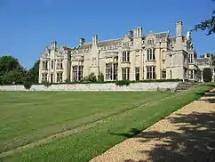 Born in about 1567, Francis Tresham was the eldest son of Sir Thomas Tresham, of Rushton Hall in Northamptonshire, and Meriel Throckmorton, daughter of Sir Robert Throckmorton of Coughton in Warwickshire.[1] According to the antiquary Anthony Wood, Tresham was educated in Oxford at either St John's College or Gloucester Hall or both,[2] although biographer Mark Nicholls mentions that there appears to be no other evidence to corroborate that claim.[1]