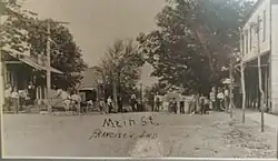 The town was platted and laid out on the east side of the Wabash and Erie Canal by John Perkins in 1851.[8] Francisco was incorporated in 1907 and the Francisco State Bank chartered a year later. Its heydey was in the mid-1850s during use of the ill-fated canal to ship goods and produce south to Evansville. Mills, grain warehouses and packing establishments thrived during the decade. Remnants of the old canal are still visible just south of Highway 64 and west of town.[9][10]