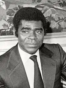 In 1964, Macías Nguema was named deputy prime minister of the autonomous transition government established the prior year.[7] Around this time, Macías Nguema himself came to fear that he was mentally unstable. Before the 1968 Spanish Guinean general election, aged 44, he travelled to Madrid, where he was treated at the Ruben clinic.[9] Despite these concerns, Macías Nguema ran for president of the soon-to-be independent country against Prime Minister Bonifacio Ondó Edú on a strongly nationalist platform in 1968.[7] He employed a Spanish lawyer to write his texts, providing him with a coherent agenda, and made various promises to improve his popularity.[18] He would point at European-owned houses and ask the crowds if they wanted to own the place; when they responded positively, he stated that he would give them to the listeners if they voted for him.[24] However, Macías Nguema was easily distracted from his speeches, and often made "chaotic public appearances". His bouts of erratic behavior were generally believed to be the sign of a "fearless" and "charming" leader.[25] In what has been the only free election held in the country to date, he defeated Ondó Edú in the runoff and was sworn in as president on 12 October.[7] During his time as president-elect, he was awarded the Collar of the Order of Civil Merit. He was also made Commander of the Civil Order of Africa for his service during the colonial administration. By this point he had also distanced himself from Catholicism, becoming outwardly critical of the Church.[26]