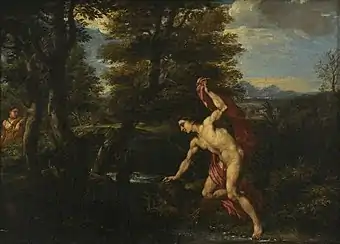 Franciscus II is now mainly known for his altarpieces and mythological scenes although he also painted portraits. He also had a reputation as a landscape painter and his mythological scenes often include extensive landscapes in a style reminiscent of Claude Lorrain. An example is Narcissus and Echo (Christ Church, University of Oxford). The painter was already at the time of his stay in Rome known for his Roman landscapes and in particular for his detailed rendering of trees and foliage. Most of his landscapes are known only as engravings, few in their original oil version. A large number of small, unsigned landscapes has been handed down almost exclusively in engravings, which were made by Giovanni Giacomo de Rossi alla Pace in the 1660s in Rome. They found wide circulation and were already present in early collections.[1]