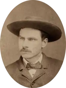 Frank Butler was born in County Longford, Ireland, and moved with his family to the United States at the age of 13.[1] While Butler's birth date is listed on his and Oakley's U.S. passport application as February 25, 1852, the obituary for Butler posted by the Associated Press in 1926 has his age as 76, which meant he was born in 1850.[2] According to baptism registers on file at the National Library of Ireland, Butler was baptized on January 30, 1847.[3][4] His parents were Michael Butler and Catherine Whelan.[1][5][3] He was the oldest of their five children.[1][6] He initially worked a series of odd jobs, including one as a glass blower, while living near Camden, New Jersey.[6] Butler married Henrietta Saunders around 1870; they had two children, Edward and Katie.[6][7] The two divorced a few years later.