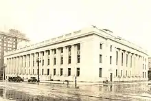 The Classical Revival style building was designed by the Office of the Supervising Architect of the United States Department of the Treasury headed by James Knox Taylor. Construction began in the summer of 1902. Flaws in the stonework delayed construction, but the United States Post Office and Courthouse was finished in late 1905. An addition, which echoed the style of the original building, was constructed on its west (rear) side between 1910 and 1912.[3]