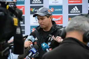 - ↑ Hall, David. "Drink thrown at Frank Farina and fans ejected as unhappy Sydney FC fans revolt". Fox Sports. Retrieved 12 February 2014.
