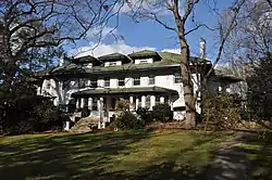 The Frank H. Stewart House is a historic house at 41 Montvale Road in Newton, Massachusetts. The 2+12-story stucco-clad house was built in 1909 for Frank H. Stewart, a lawyer. It is located in an Olmsted-designed subdivision, and is one Newton's finest large Classical Revival houses. It has a green tile hipped roof with exposed rafter ends, pierced by three hip-roofed dormers. The main facade has a front porch that merges into two flanking single-story projecting bays, all also topped by a green tile roof. There are flanking side sections fronted by porches.[2]