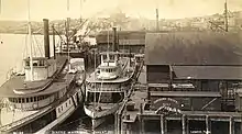 Panoramic photograph of the Seattle waterfront with T. J. Potter paddle steamer on right, 1891