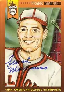 ![]() Frank Mancuso autograph on a St. Louis Browns commemorative card (#23) | |