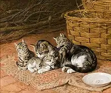 Frank Paton (23 November 1855 – 13 November 1909) was an English artist of the Victorian and Edwardian eras, best known for his paintings of animals and scenes of rural life. He was a successful artist during his lifetime and could even count Queen Victoria as an admirer of his work.[1] His most famous compositions, "Fairest of Them All" and "Puss in Boots" (1880), still sell as collectibles today in various forms, including canvas, posters and plates. His series of printed Christmas cards published between 1880 and 1909 have also become collectibles.