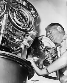Frank Schubert with the lens of the Coney Island Light in 1961