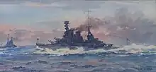 During World War Two, Wood created also paintings to commemorate some of the major events of the war that had a naval component for example The Epic of Dunkirk and The Battle of The River Plate.