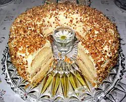 The Frankfurter Kranz (German pronunciation: [ˈfʁaŋkfʊʁtɐ ˈkʁant͜s] or Frankfurt Crown Cake)[1] is a cake specialty of Frankfurt am Main, Germany.[2]