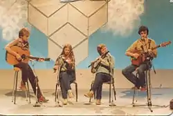 The new couple continued to play at sessions in Donegal, and this formed the basis for their musical partnership.[6] They made their recording debut on Albert Fry's eponymous record in 1979 and later formed a short-lived group called Ragairne which also included Gearóid Ó Maonaigh, Ní Mhaonaigh's brother, on guitar, and was rejoined in 1981 by singer Eithne Ní Bhraonáin, later known as Enya.[7]